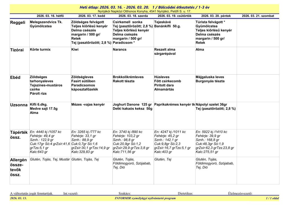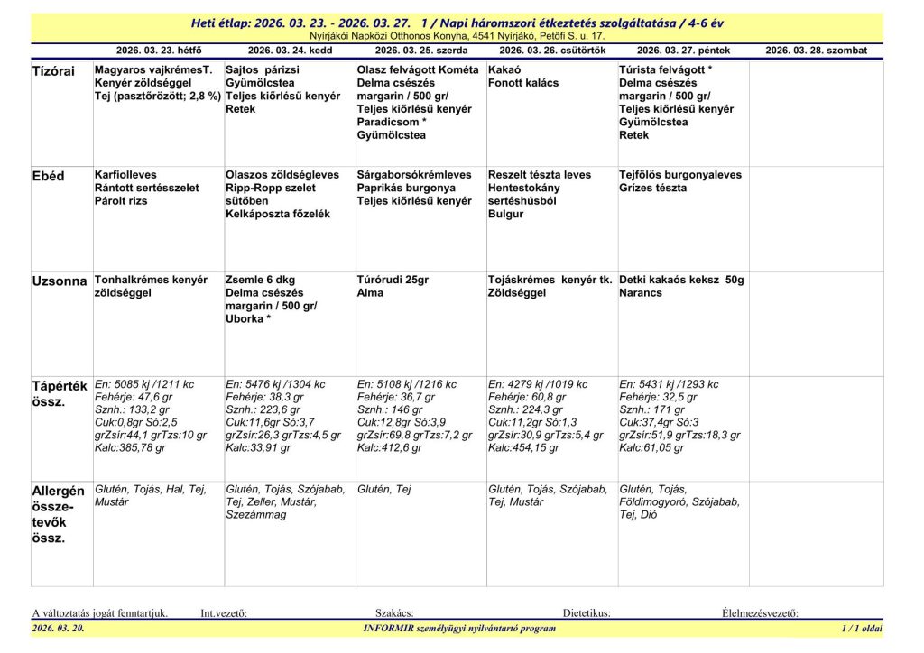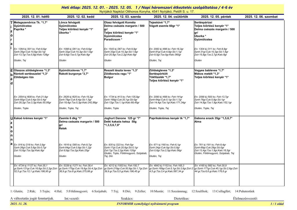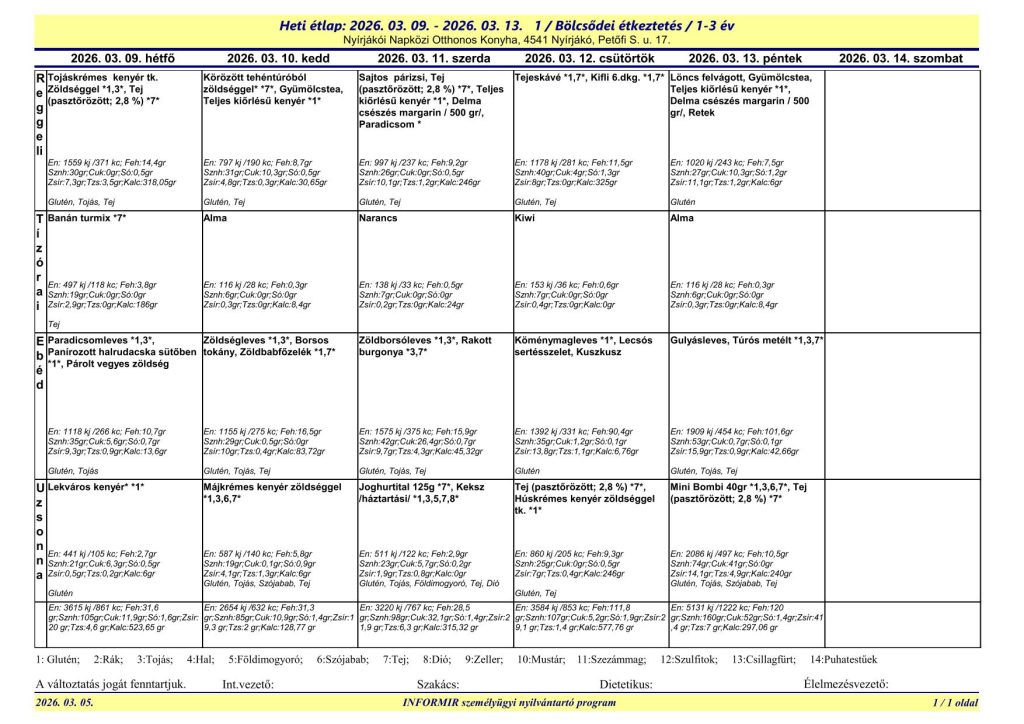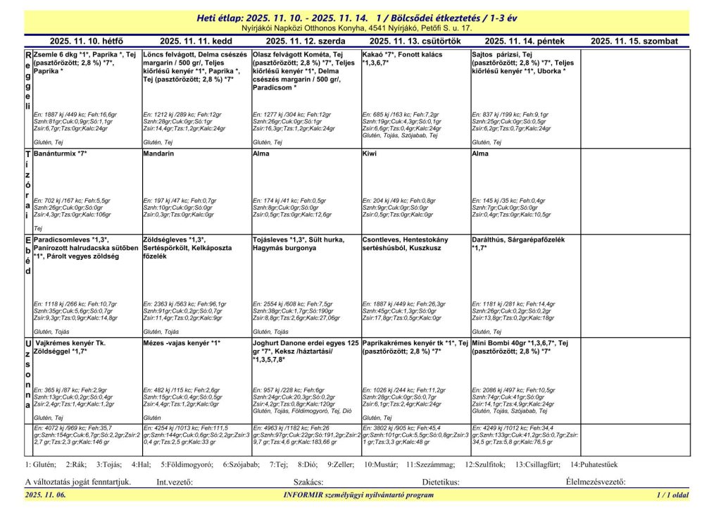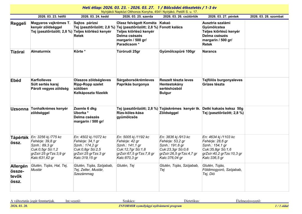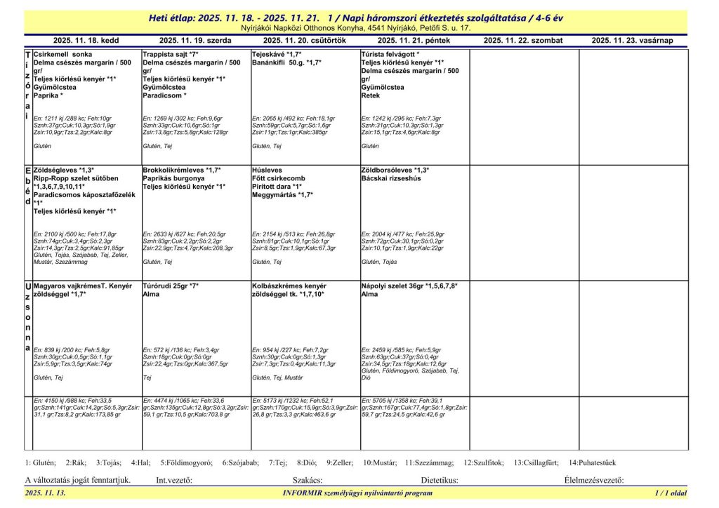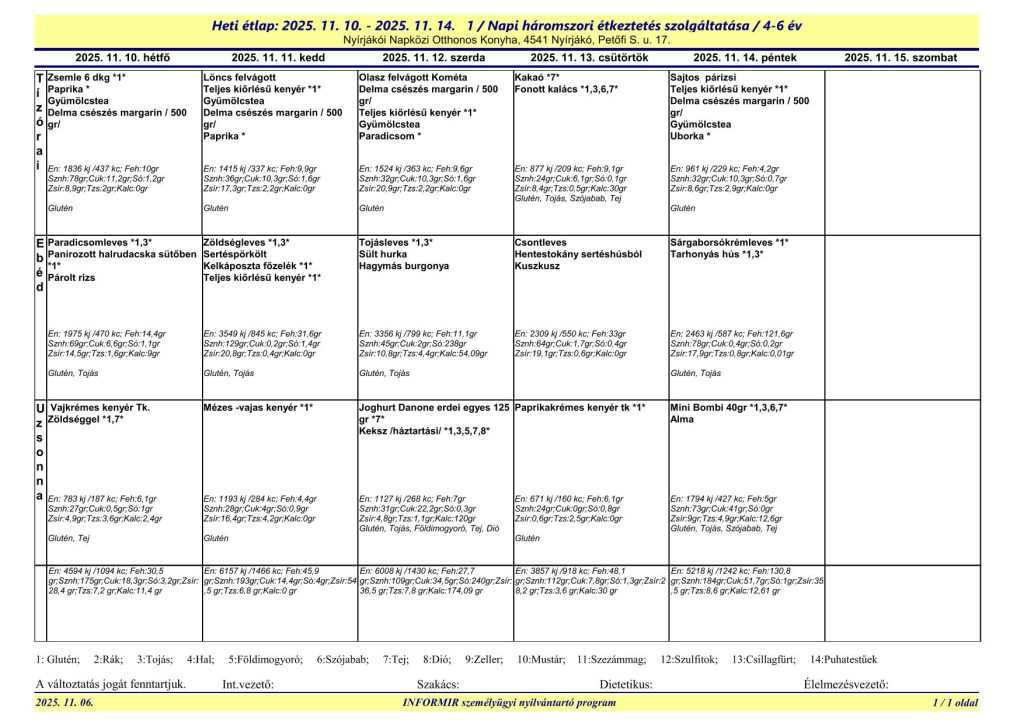 A Nyírjákói Napközi Otthonos Konyha étlapjai