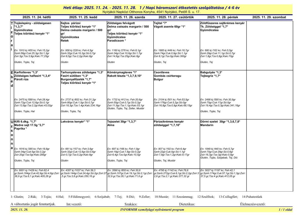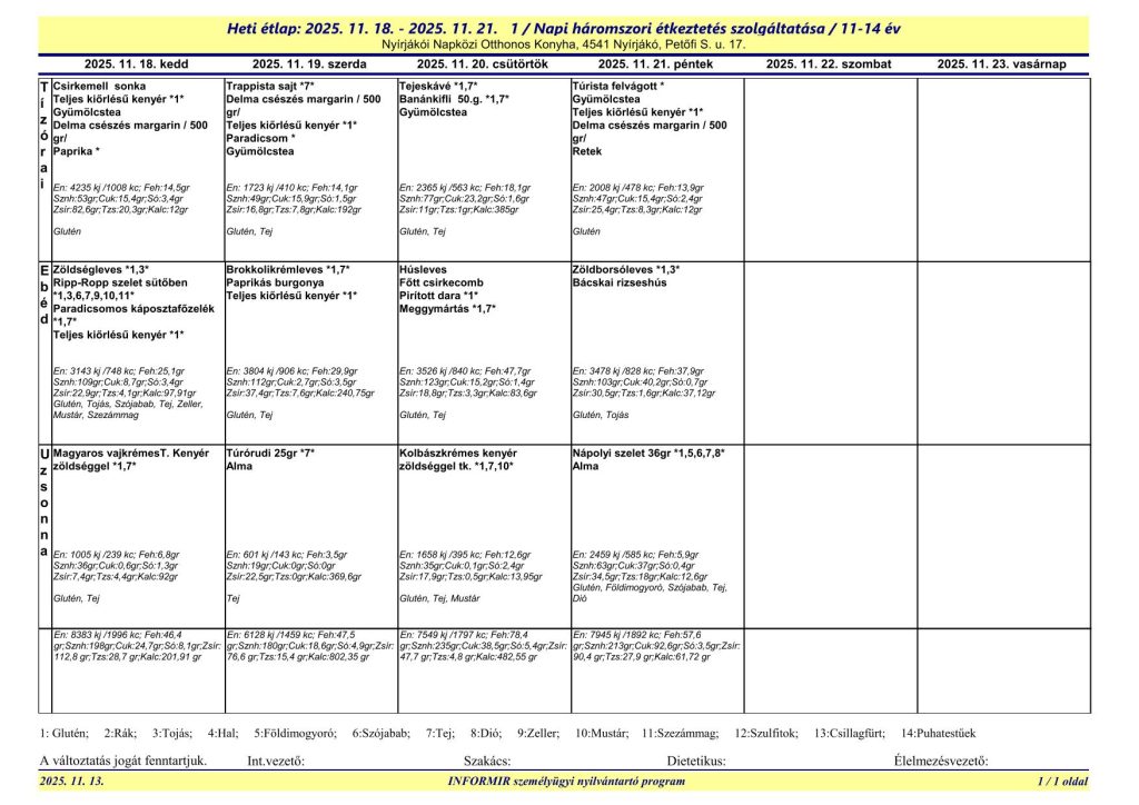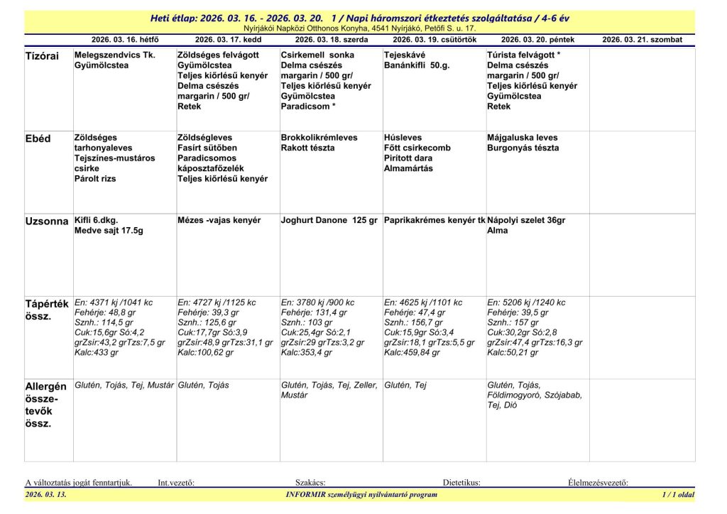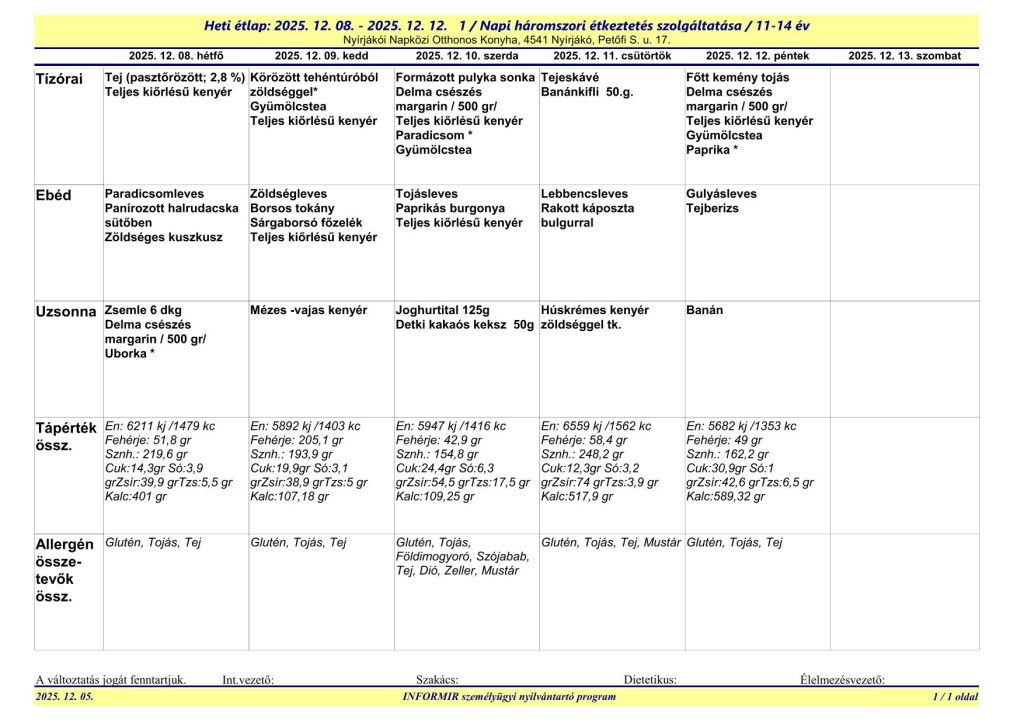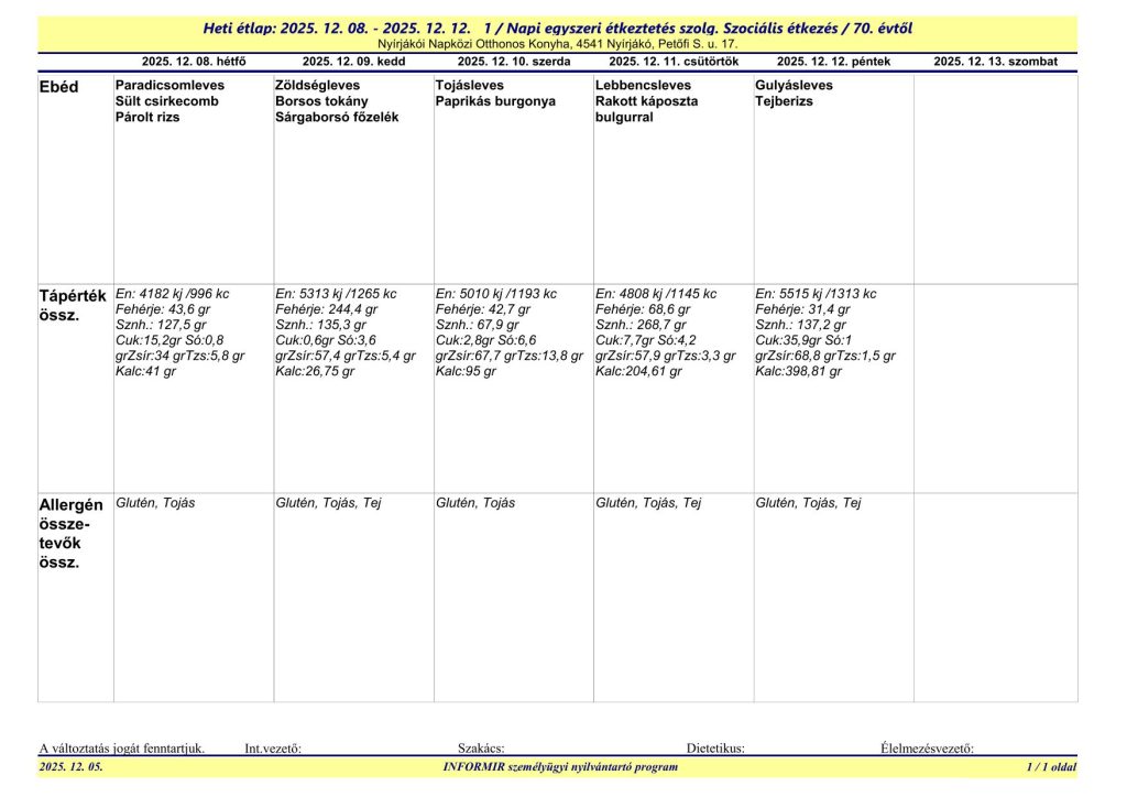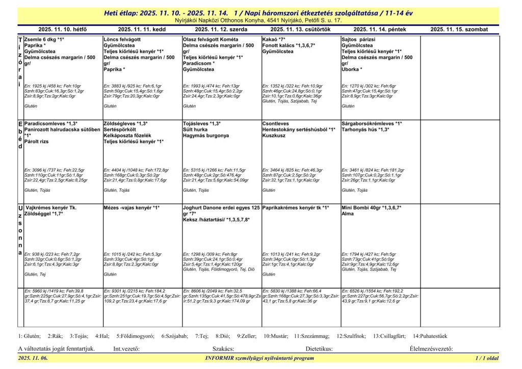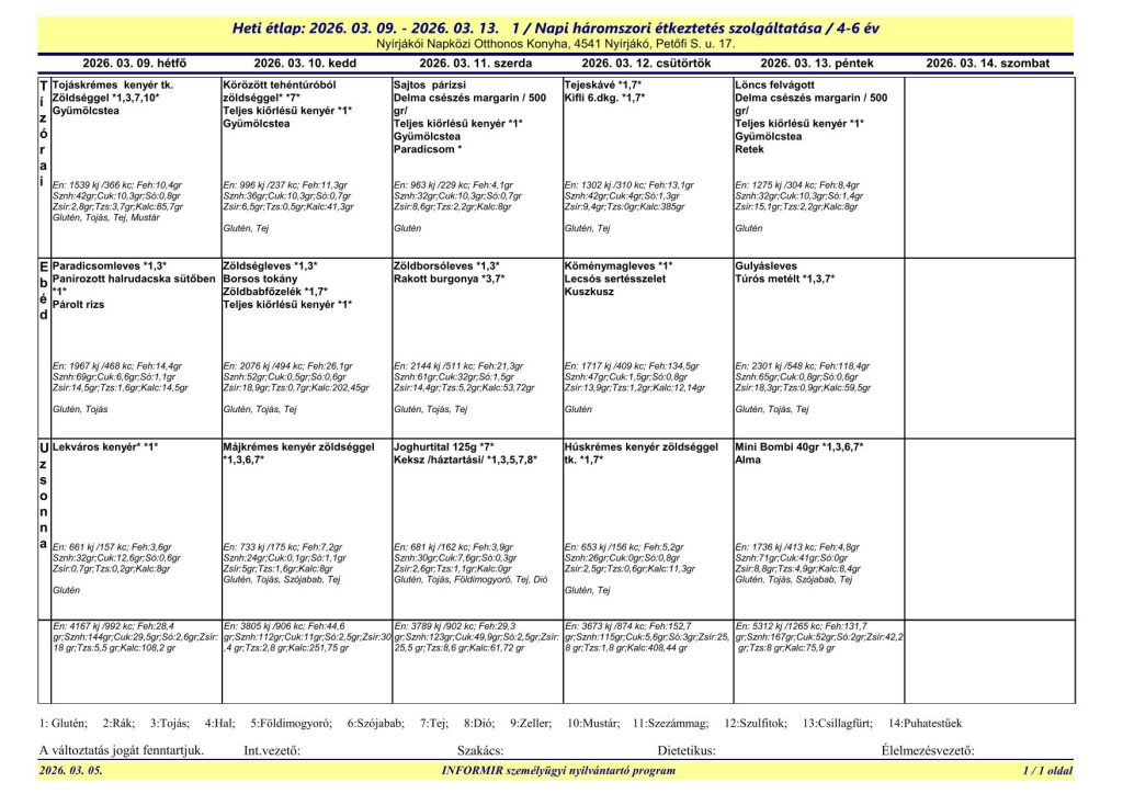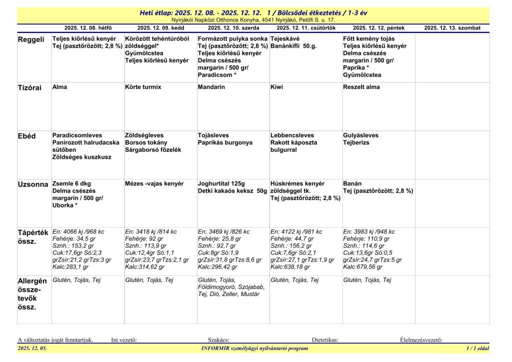 A Nyírjákói Napközi Otthonos Konyha étlapjai