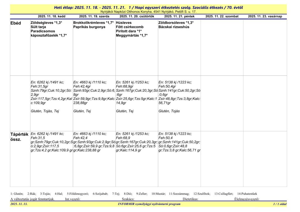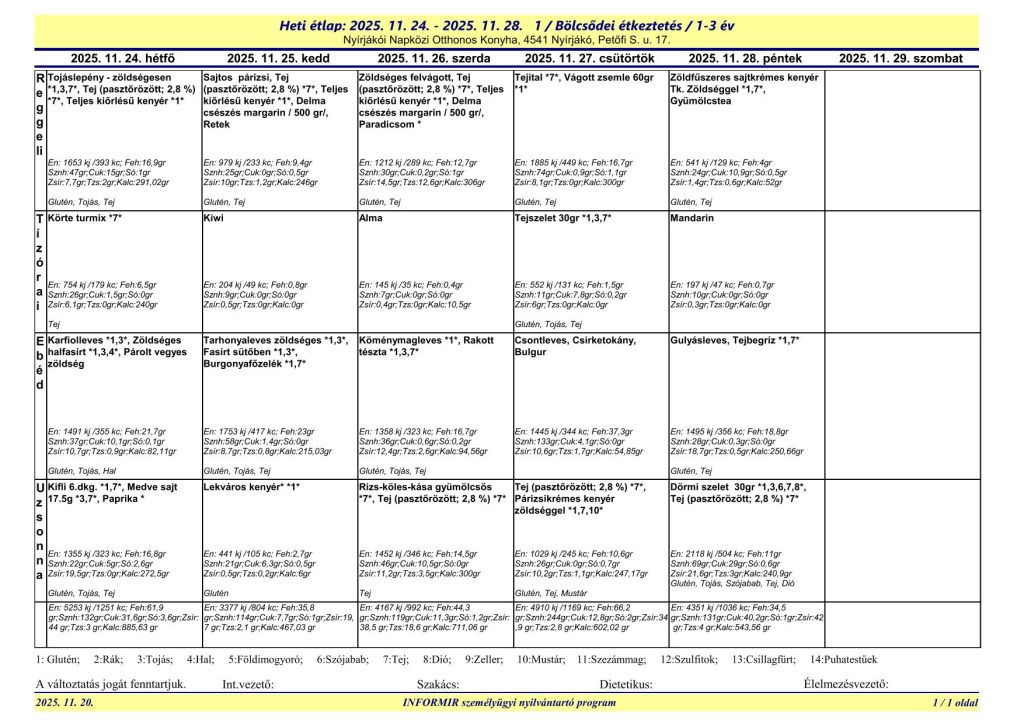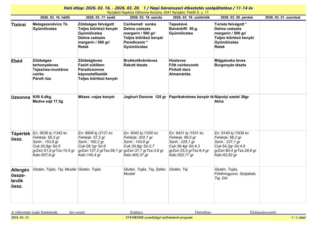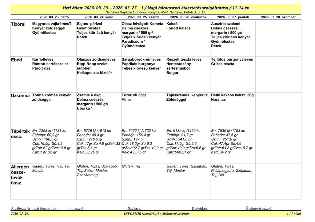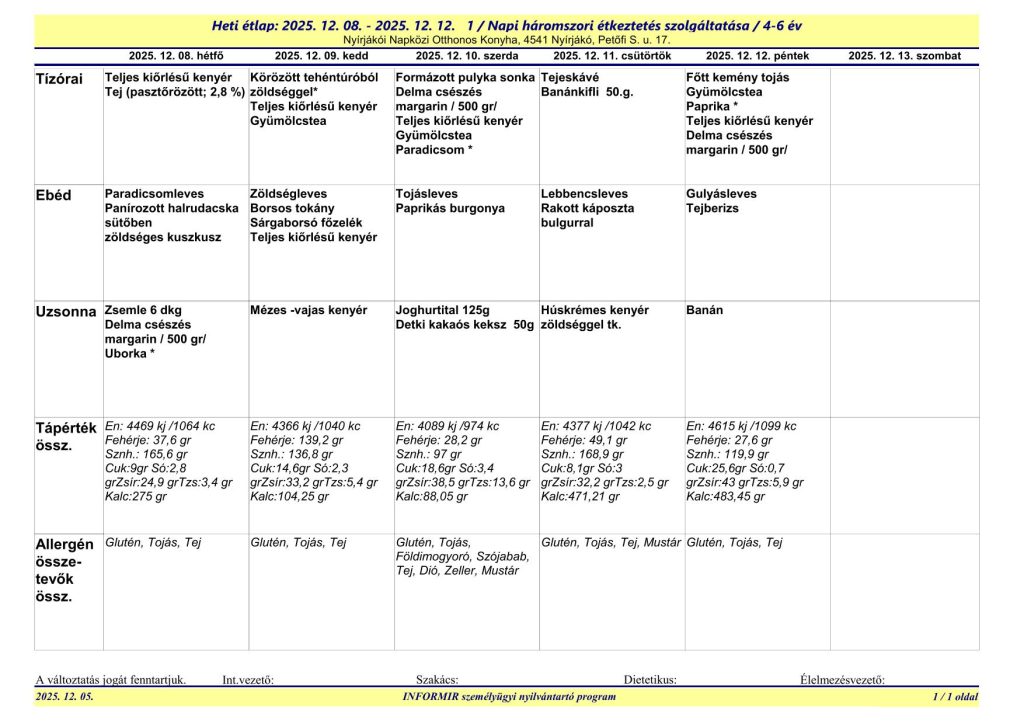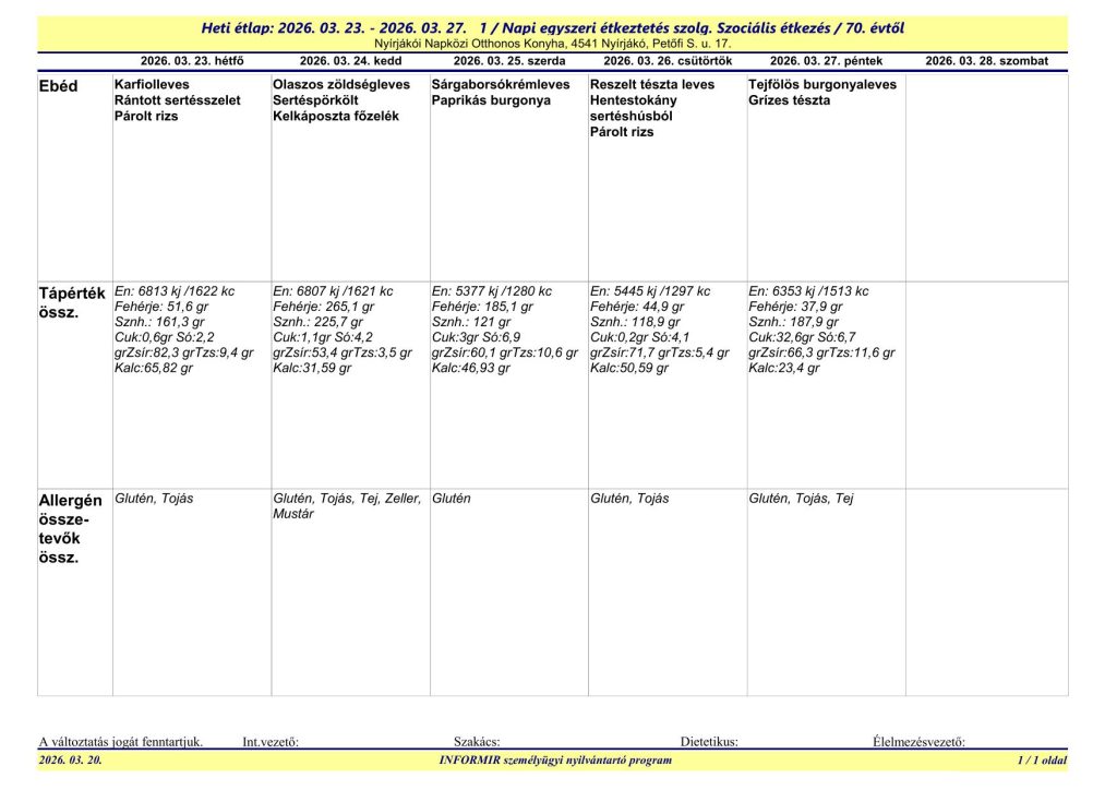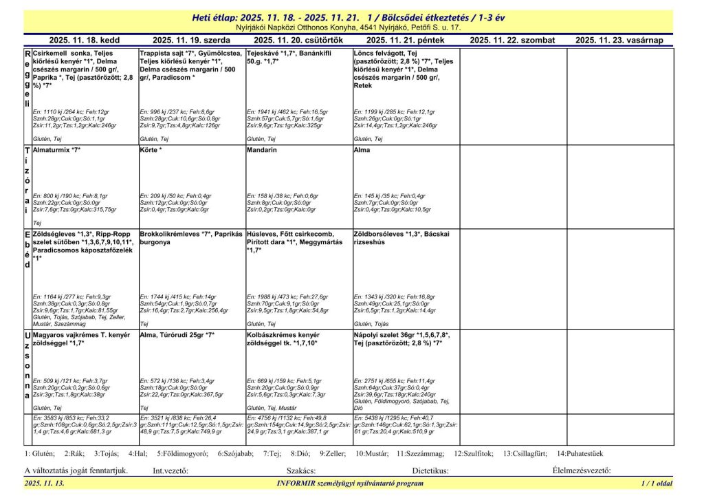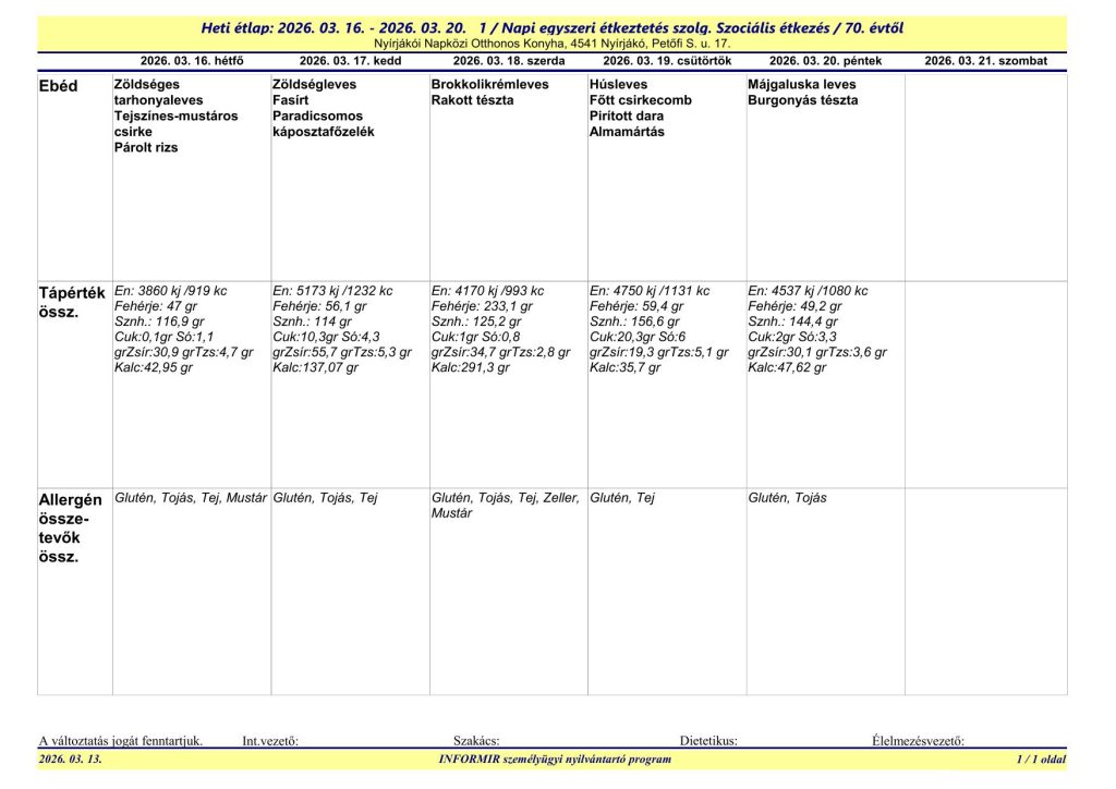 A Nyírjákói Napközi Otthonos Konyha étlapjai