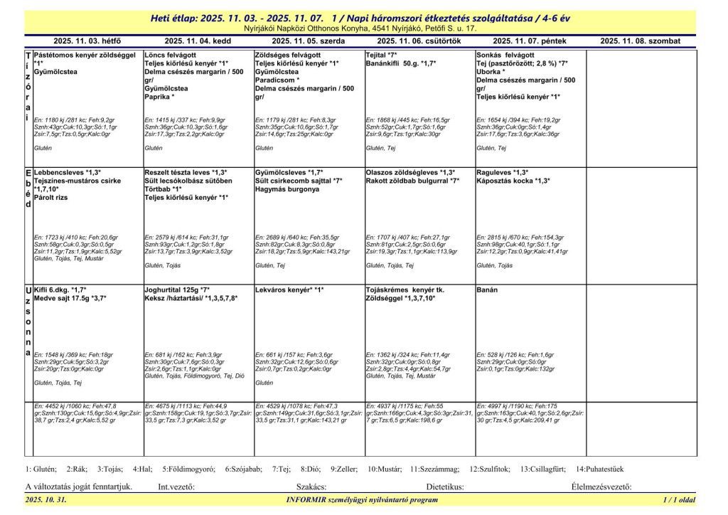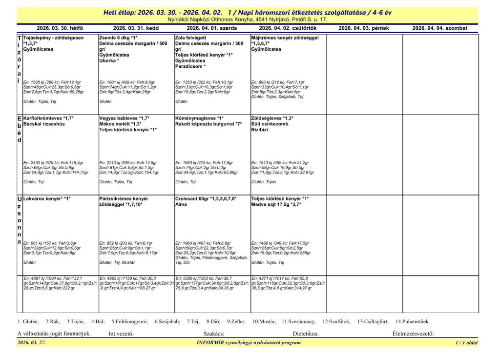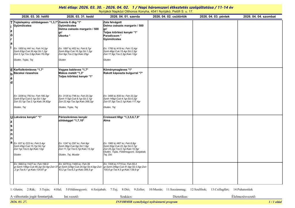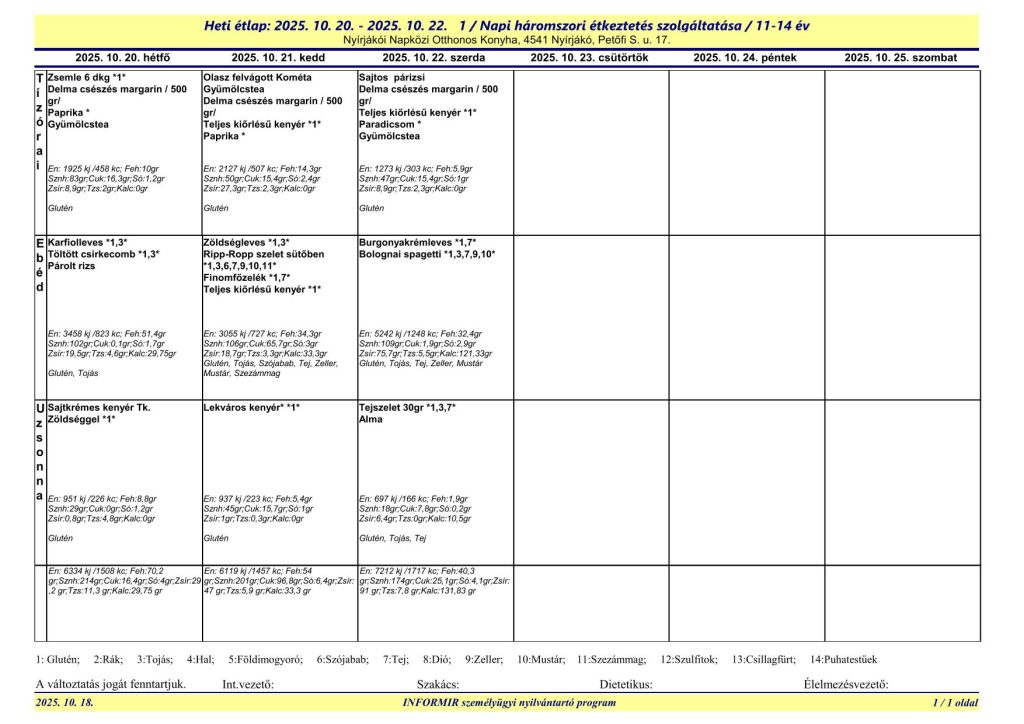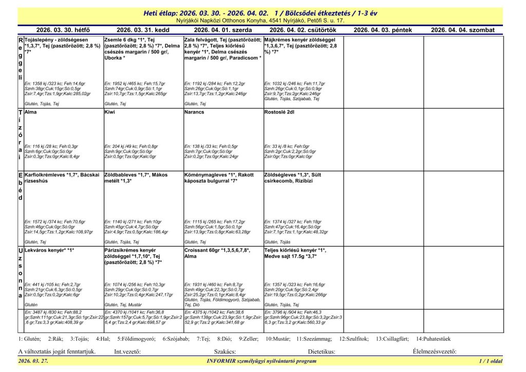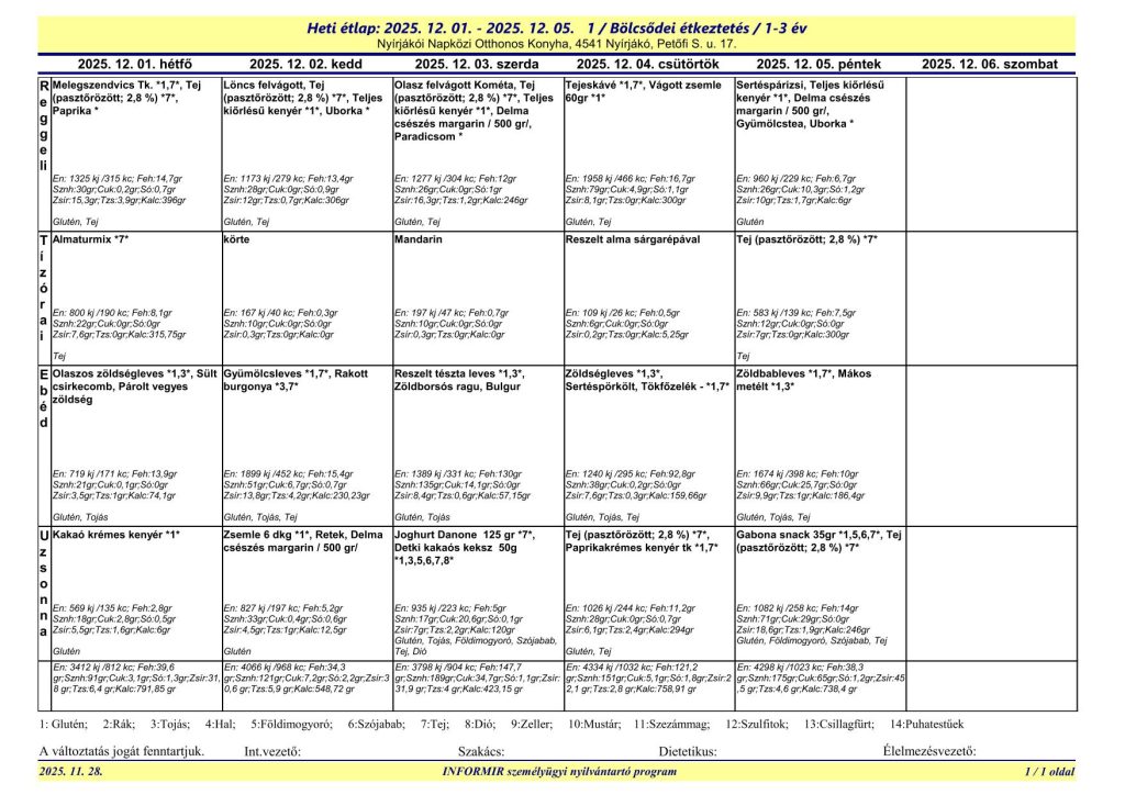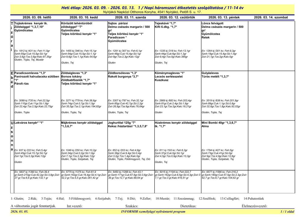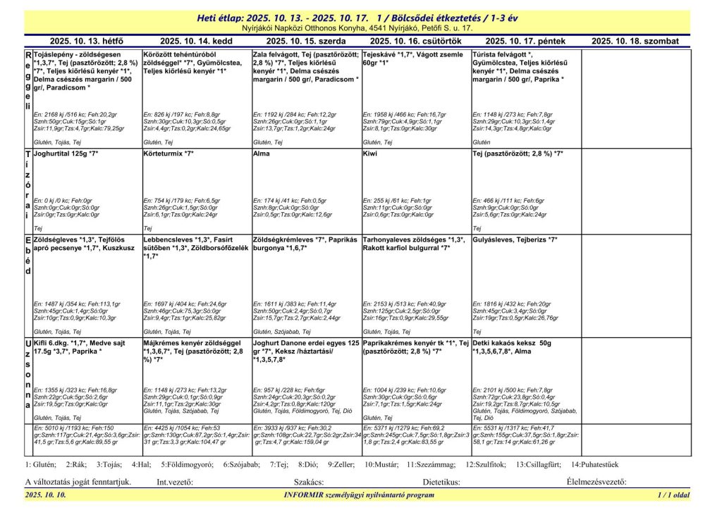 A Nyírjákói Napközi Otthonos Konyha étlapjai