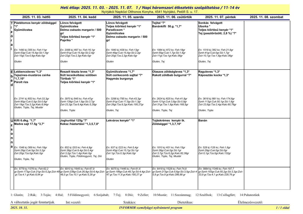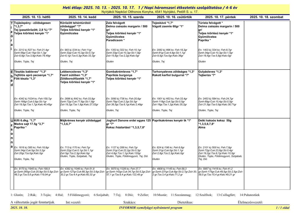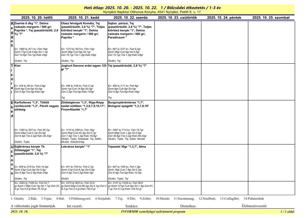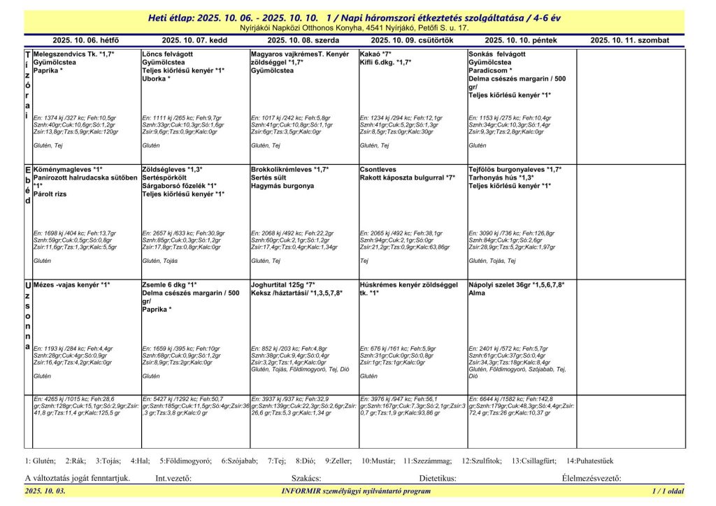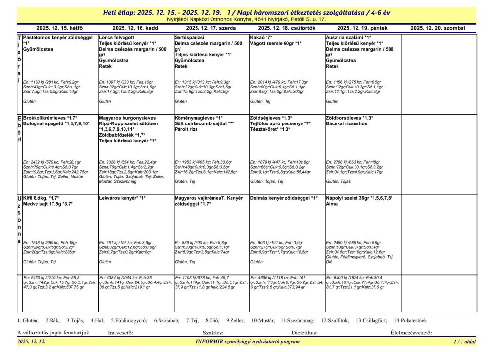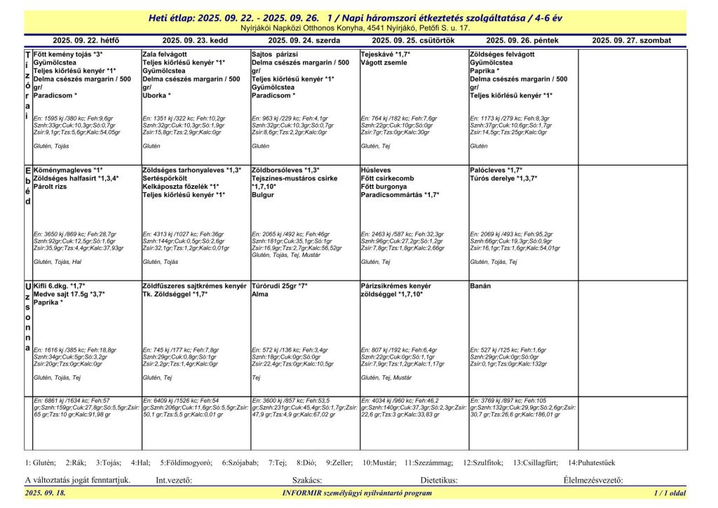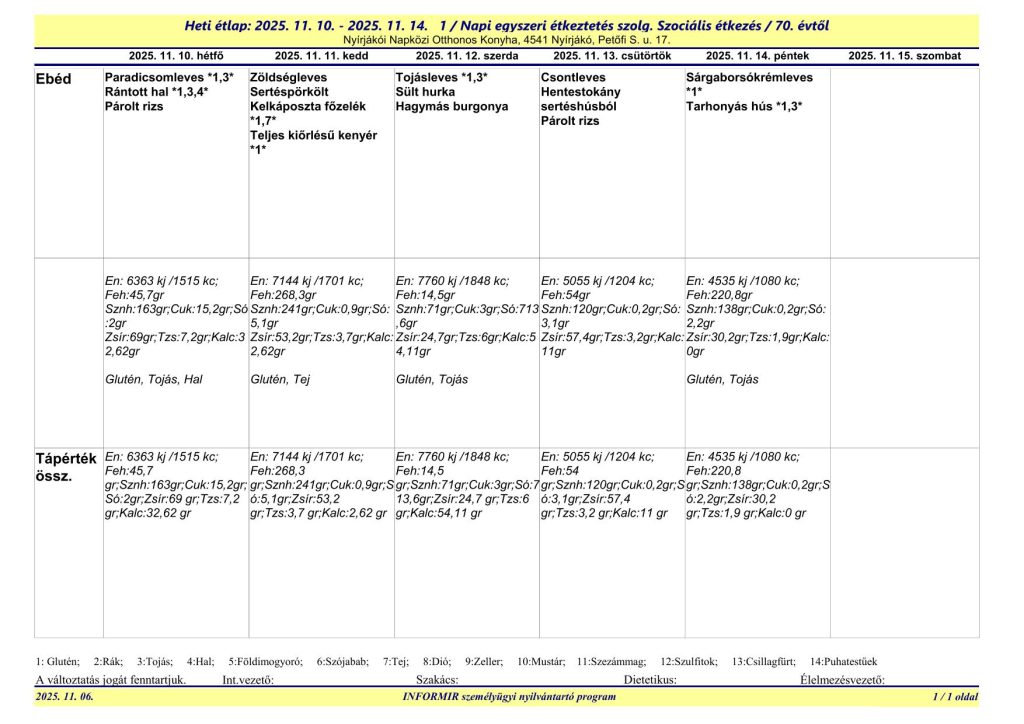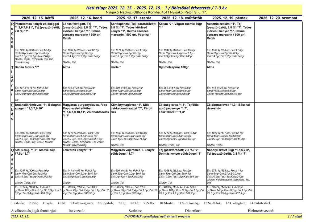 A Nyírjákói Napközi Otthonos Konyha étlapjai