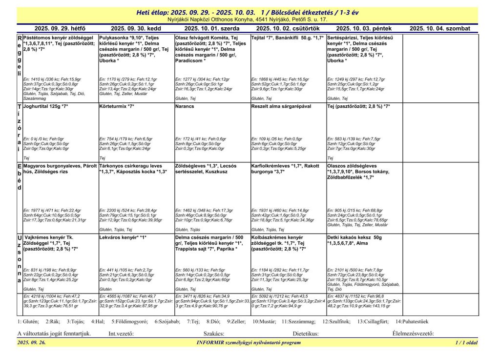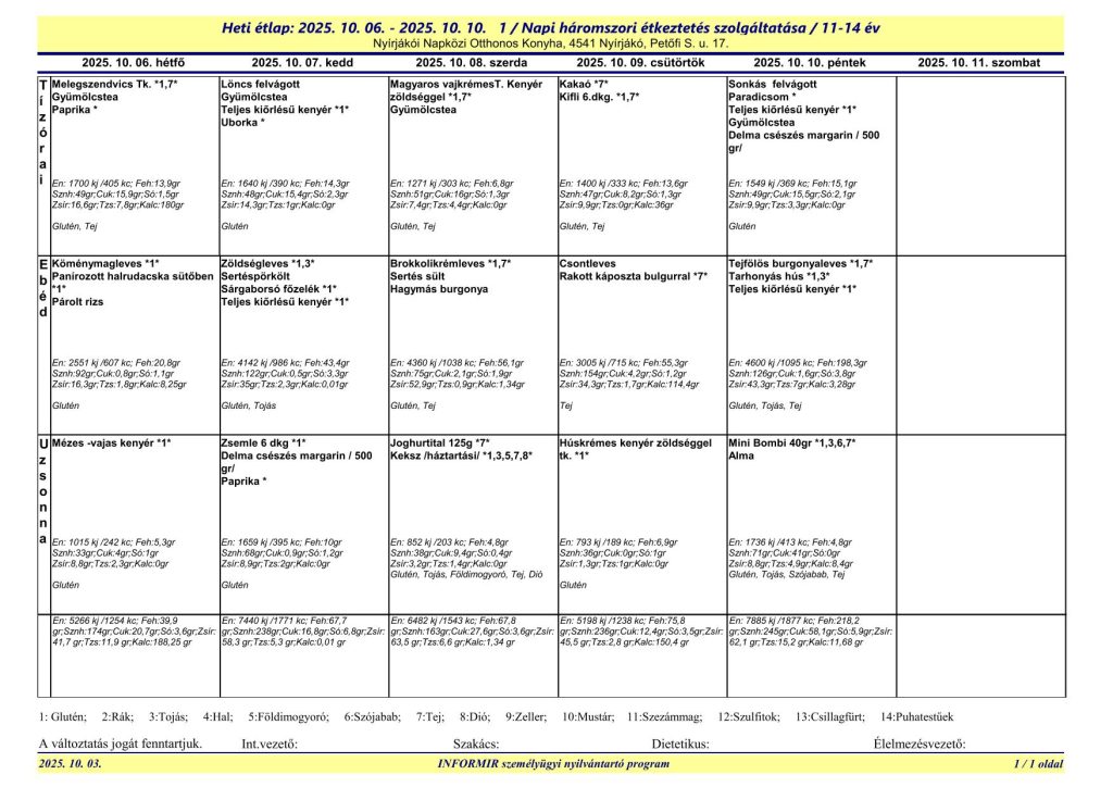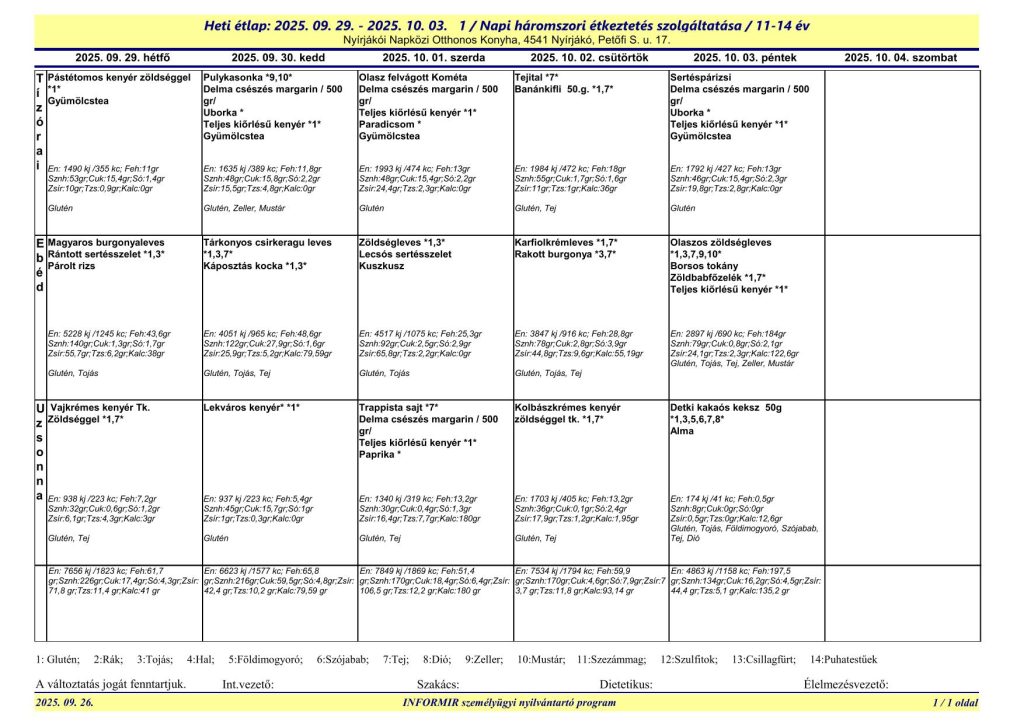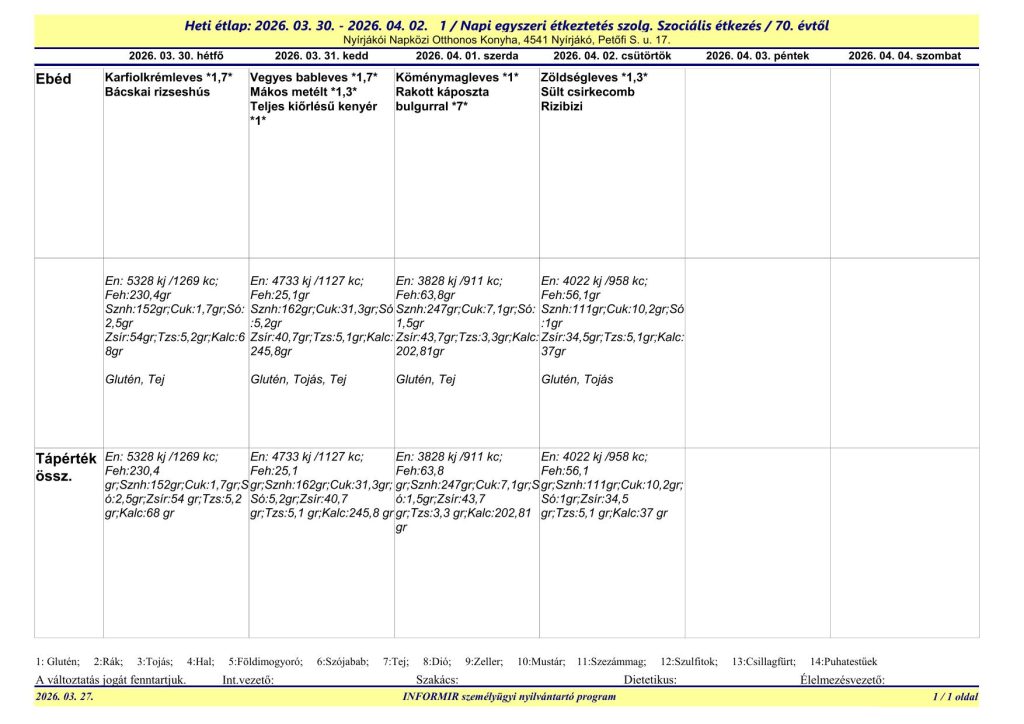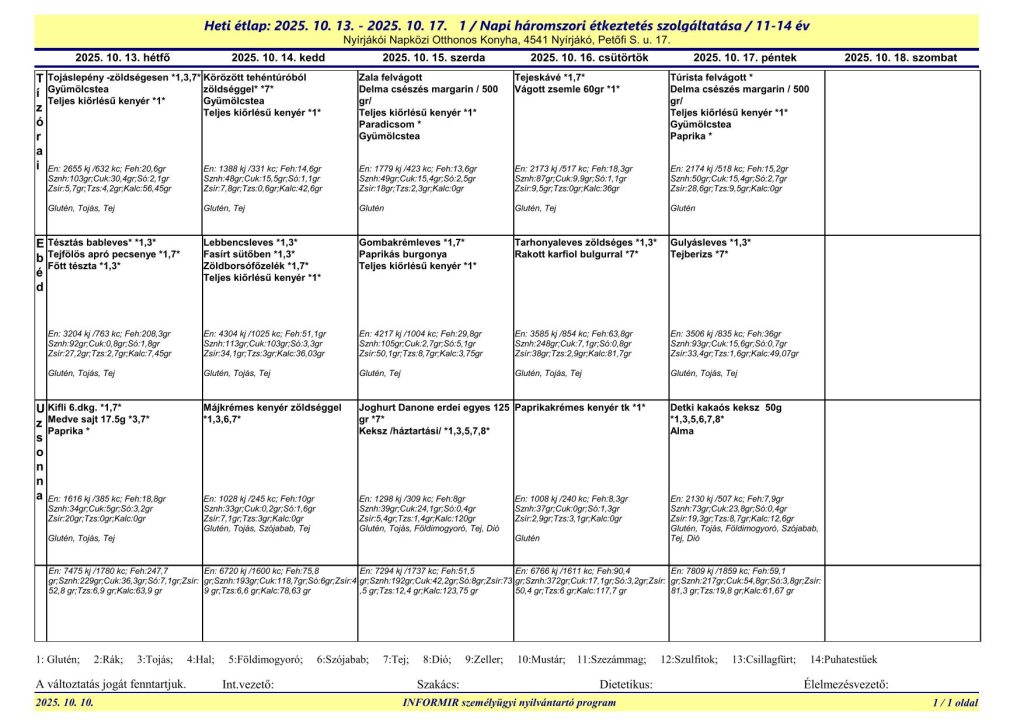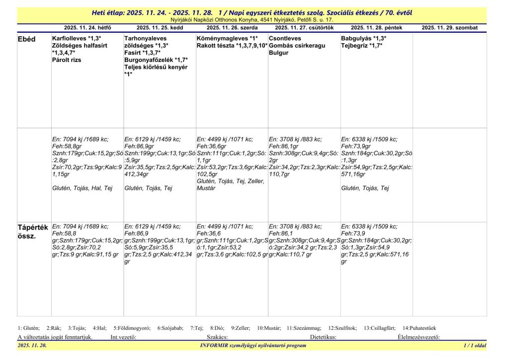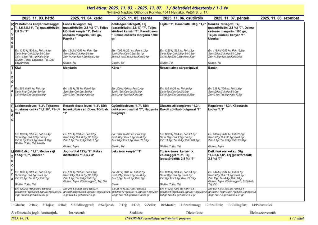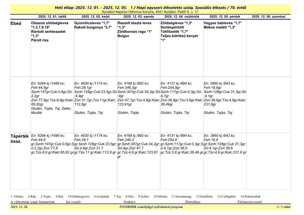 A Nyírjákói Napközi Otthonos Konyha étlapjai