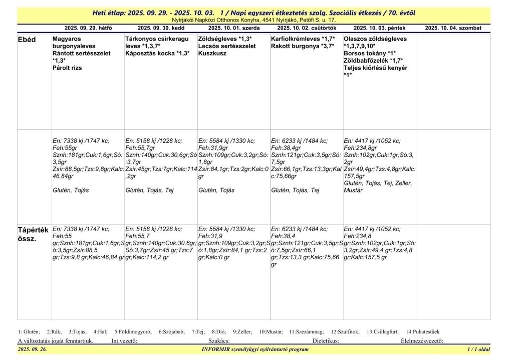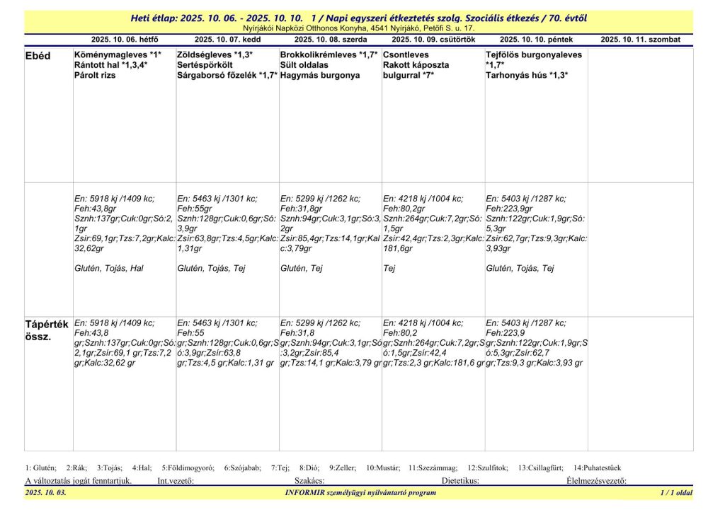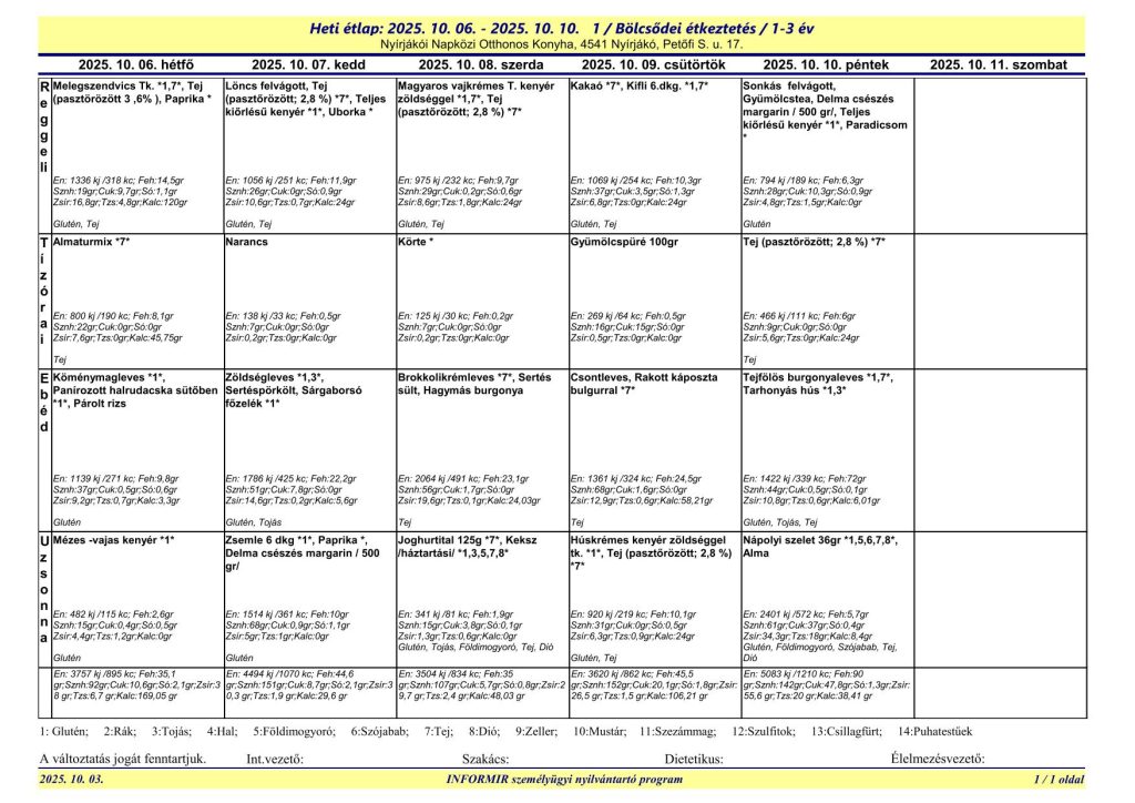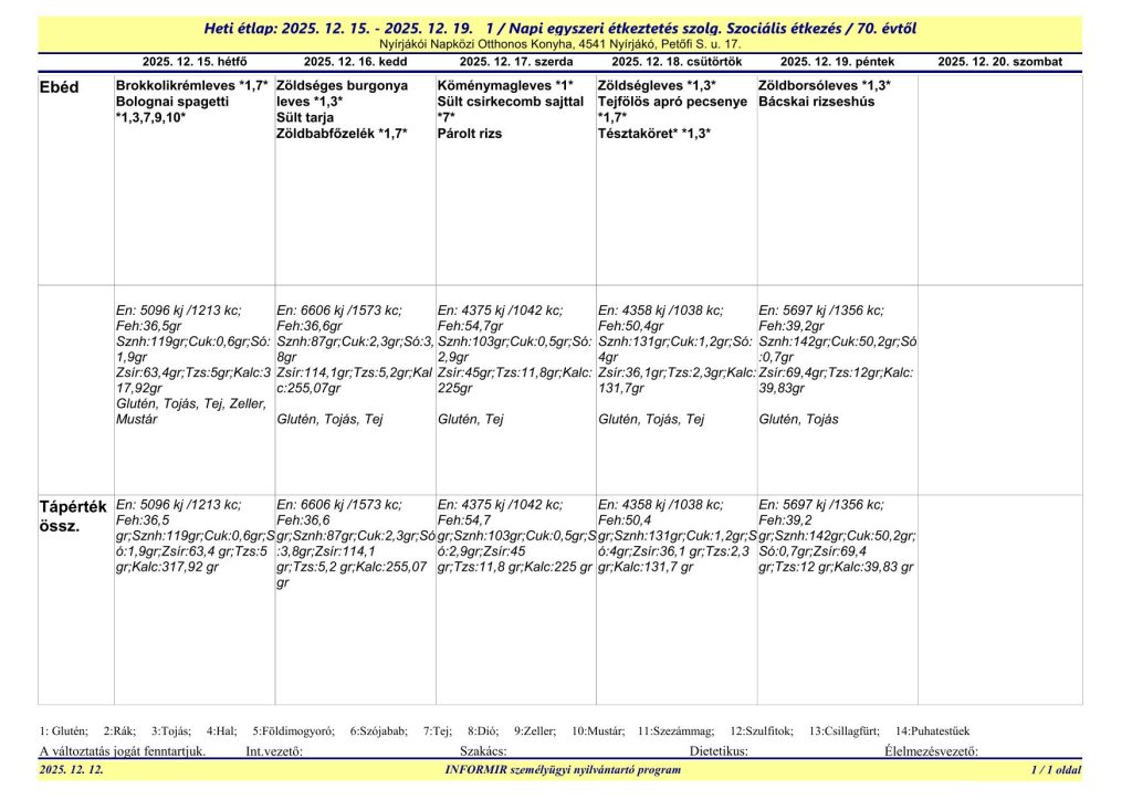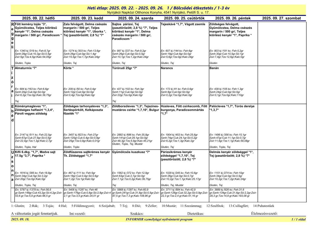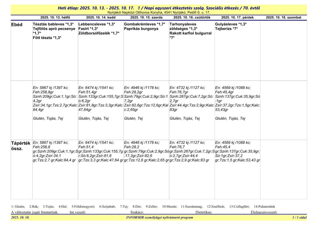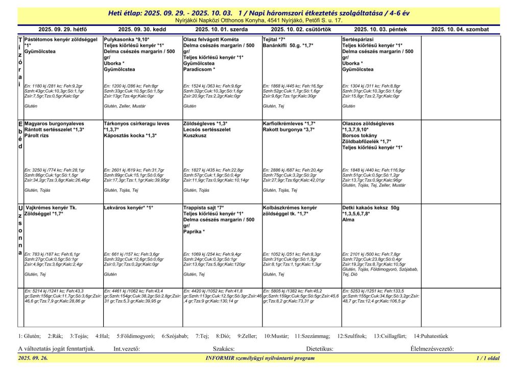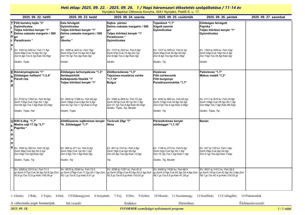 A Nyírjákói Napközi Otthonos Konyha étlapjai