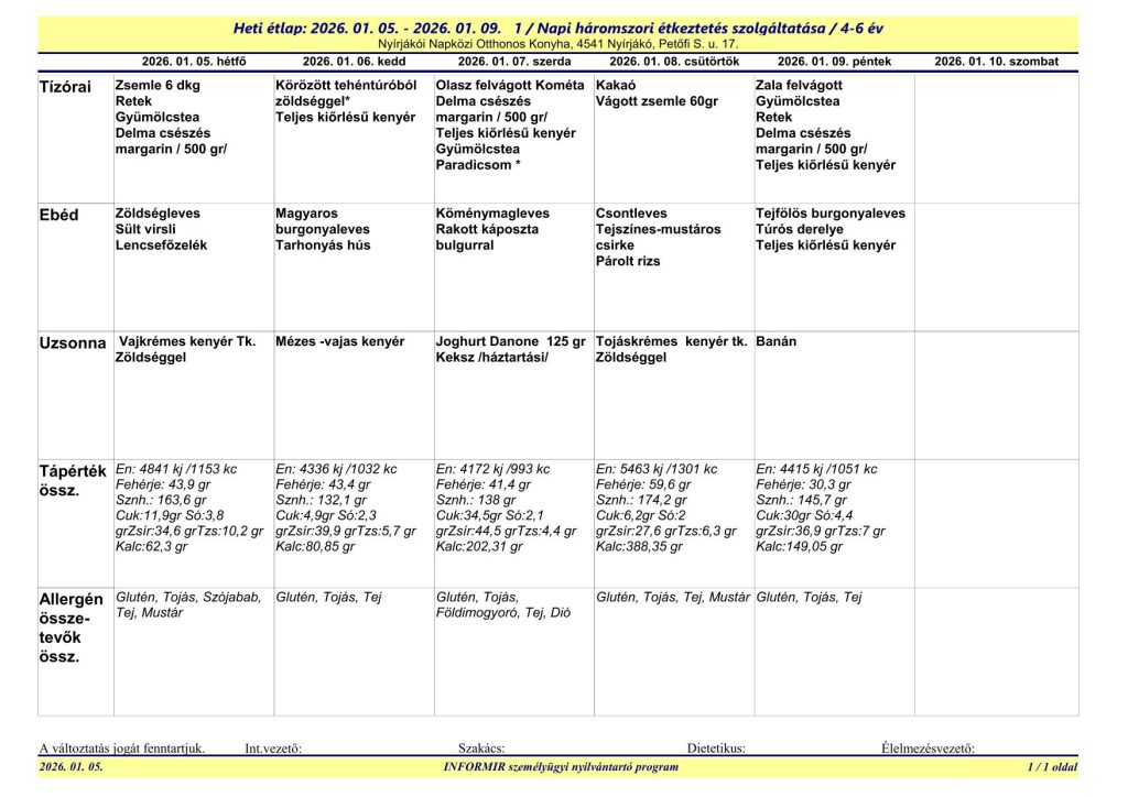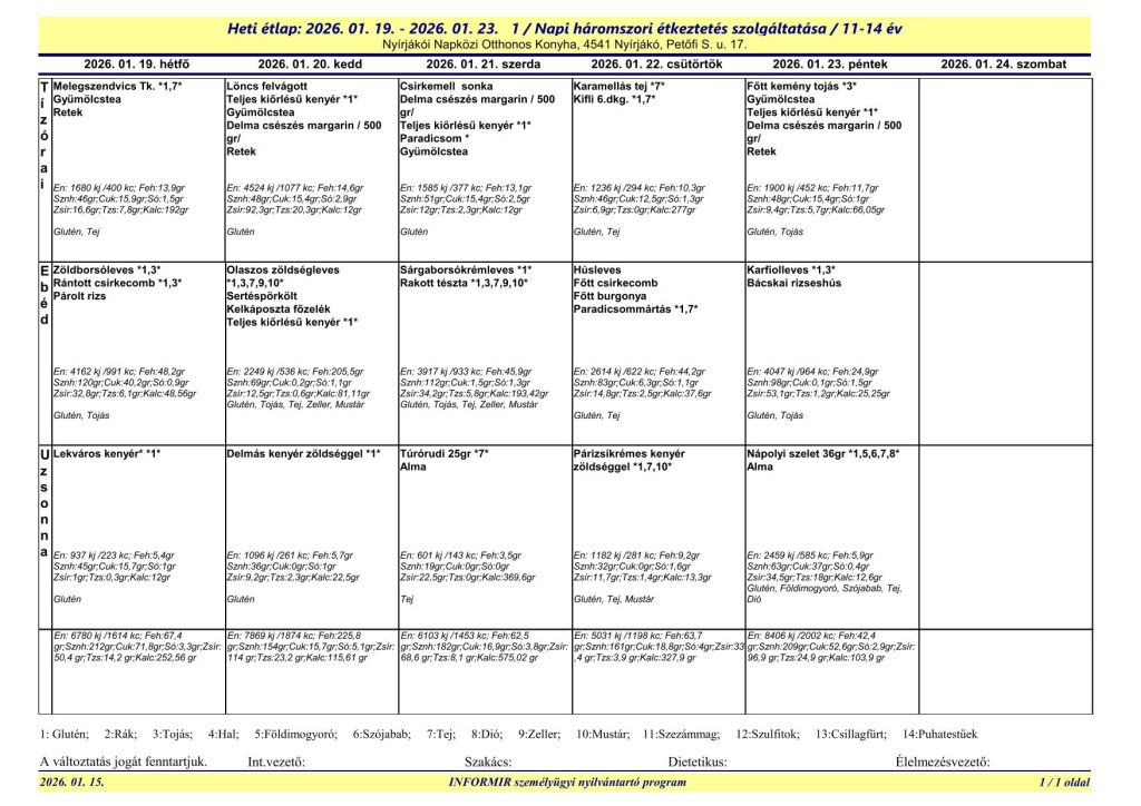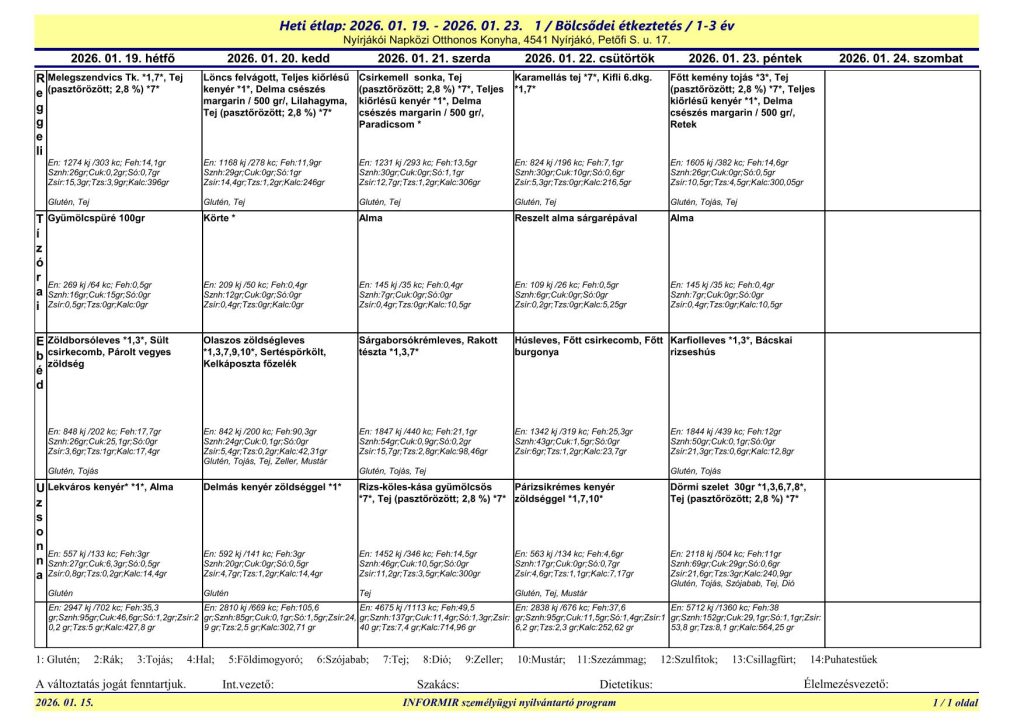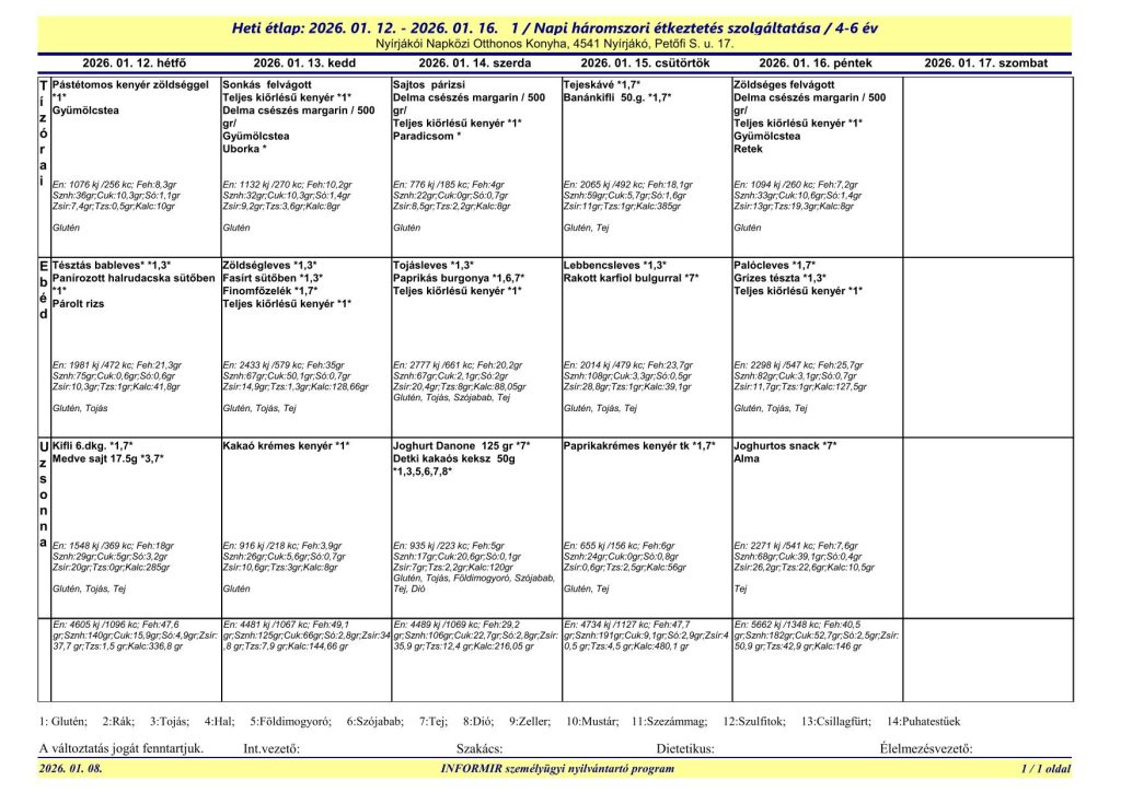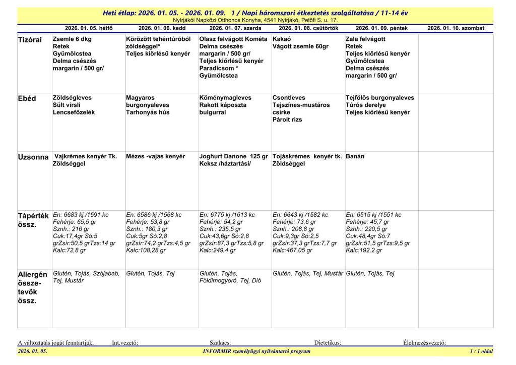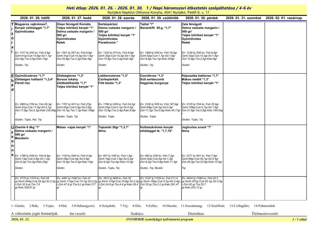 A Nyírjákói Napközi Otthonos Konyha étlapjai