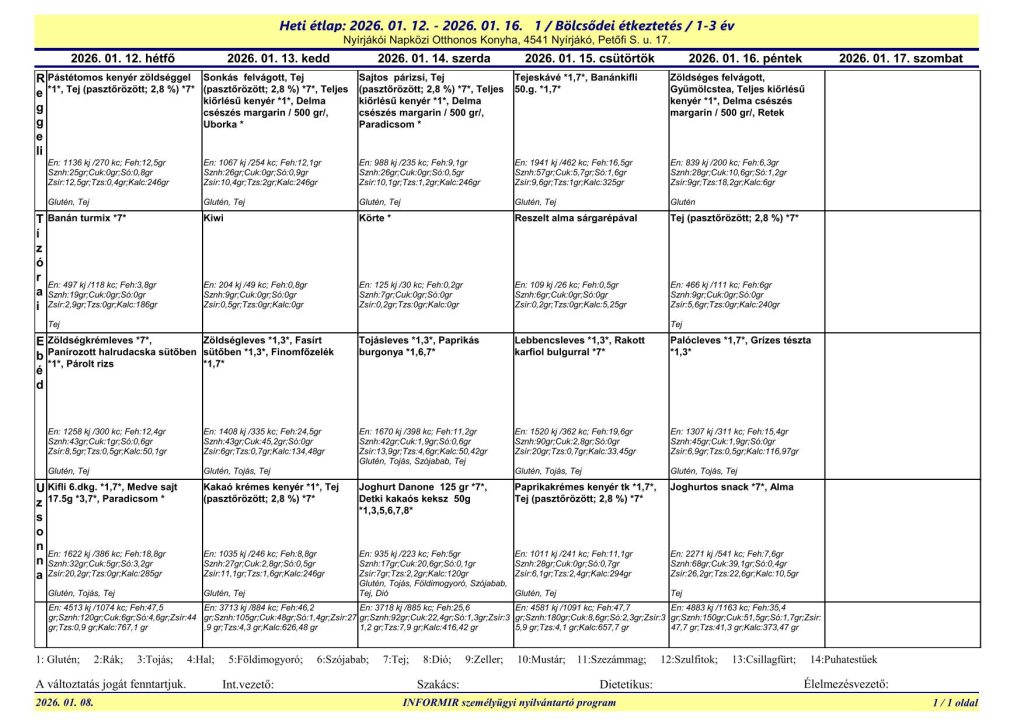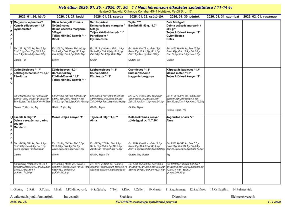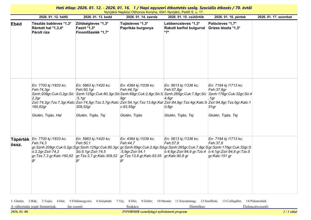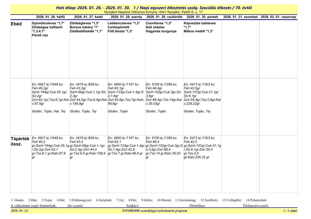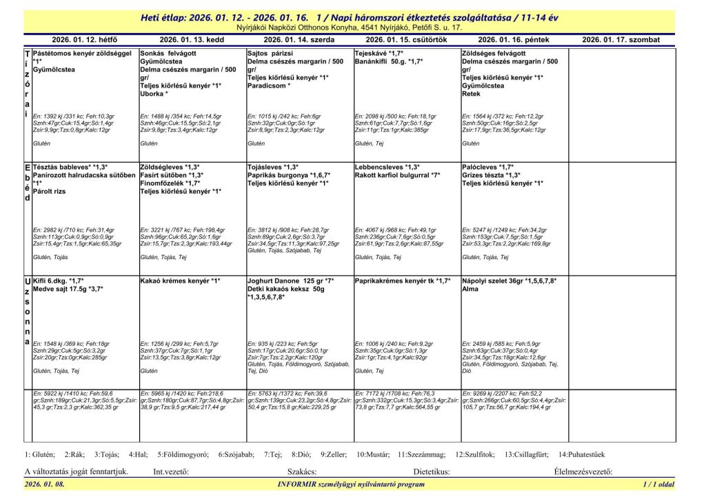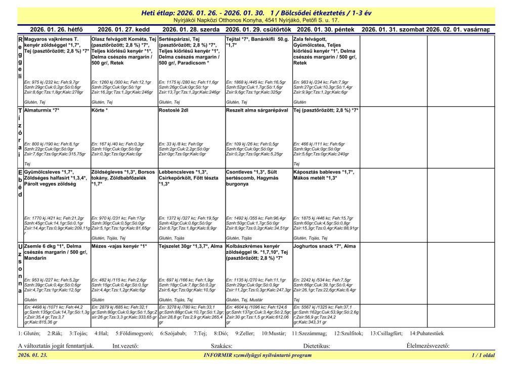 A Nyírjákói Napközi Otthonos Konyha étlapjai